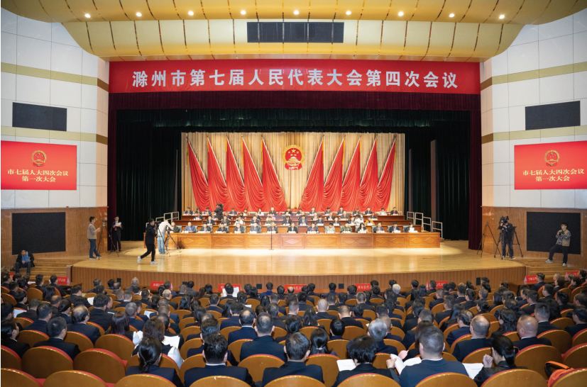 大會會場氣氛熱烈、莊重。主席臺帷幕中央,鮮艷的紅旗簇?fù)碇f嚴(yán)的國徽。二樓眺臺上懸掛的“深入學(xué)習(xí)貫徹習(xí)近平總書記考察安徽重要講話精神,真抓實(shí)干、創(chuàng)先爭優(yōu),奮力譜寫現(xiàn)代化新滁州建設(shè)新篇章!”大幅標(biāo)語鼓舞人心,催人奮進(jìn)。